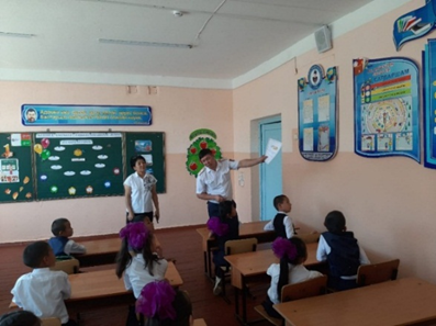 1 қыркүйек   директордың   тәрбие  ісі  жөніндегі орынбасары  А.Нурмаханова,Абитинова Л  бірлесе отырып, Еңбекшіқазақ аудандық Шелек ПБ-нің ЖПҚ ЮПТ УПИ-лары  полиция майоры  Құрамаев Ернұрмен